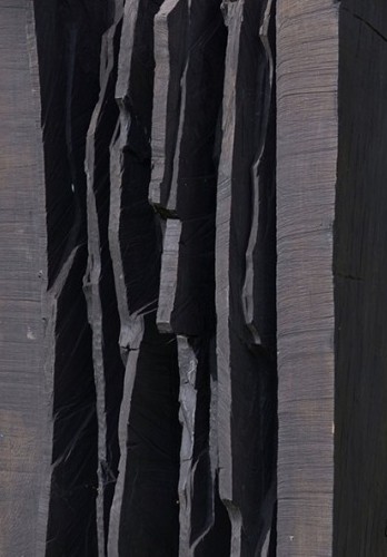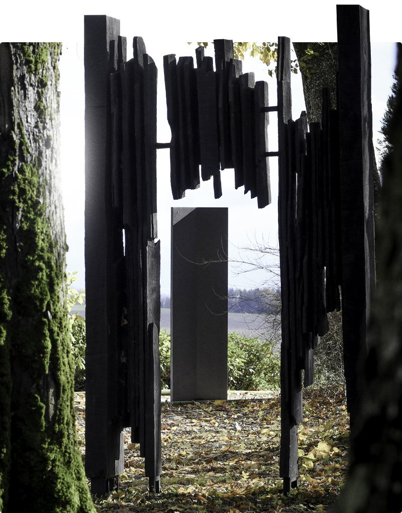Éric Sansonnens‘ Werk zielt darauf ab, das Wesen des Holzes zu enthüllen und das menschliche Unbewusste zu übersetzen. Jeder Baum wird aus bereits gefällten Stämmen ausgewählt. Er erforscht die Widerstände und Schwächen des Materials, bevor er es mit der Kettensäge formt – ein Kampf, der elementare und abstrakte Formen hervorbringt. Seine Skulpturen erinnern an die Komplexität der Natur und vermitteln den Eindruck eines Mannes, der in einer feindlichen Umgebung ringt. Sie bieten dem Betrachter einen direkten Zugang zu seiner Welt ohne äußere Vermittlung.