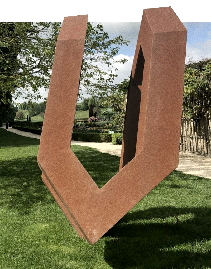 Werner Pokorny ließ sich von der Grundform des Hauses inspirieren, die er auf vereinfachte, aber stets erkennbare Weise erforschte, indem er sie stapelte, kippte oder ausbalancierte. Seine Skulpturen, die zwischen Symbolismus und Abstraktion changieren, hinterfragen das Verhältnis zwischen Wohnraum und Außenwelt und dienen als Metapher für die Rolle der Kunst im öffentlichen Raum. Indem er Einfachheit und Komplexität miteinander verbindet, schafft er Werke in verschiedenen Formaten, von bescheiden bis monumental, in denen formale Strenge mit einer starken poetischen Kraft in Dialog tritt.