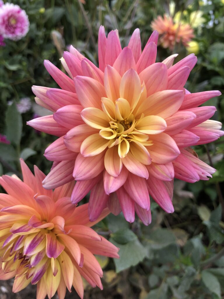 Dahlien, die ursprünglich aus dem mexikanischen Hochland stammen, haben mit ihrer unendlichen Farbenpracht und unglaublichen Artenvielfalt die europäischen Gärten erobert. Die spektakulären und farbenfrohen Knollenstauden bezaubern mit ihrer Vielfalt: von dekorativen Sorten mit üppiger Blüte über kaktusähnliche Dahlien mit schmalen Blütenblättern und runden Pompons bis hin zu schlichteren Sorten mit Kragen, die von Bestäubern geschätzt werden. Dahlien sind pflegeleicht und gedeihen am besten in voller Sonne und auf nährstoffreichem, gut durchlässigem Boden. Mit minimaler Pflege – Stützen, Gießen und Verblühtes entfernen – bieten sie bis in den Herbst hinein eine üppige Blütenpracht.
