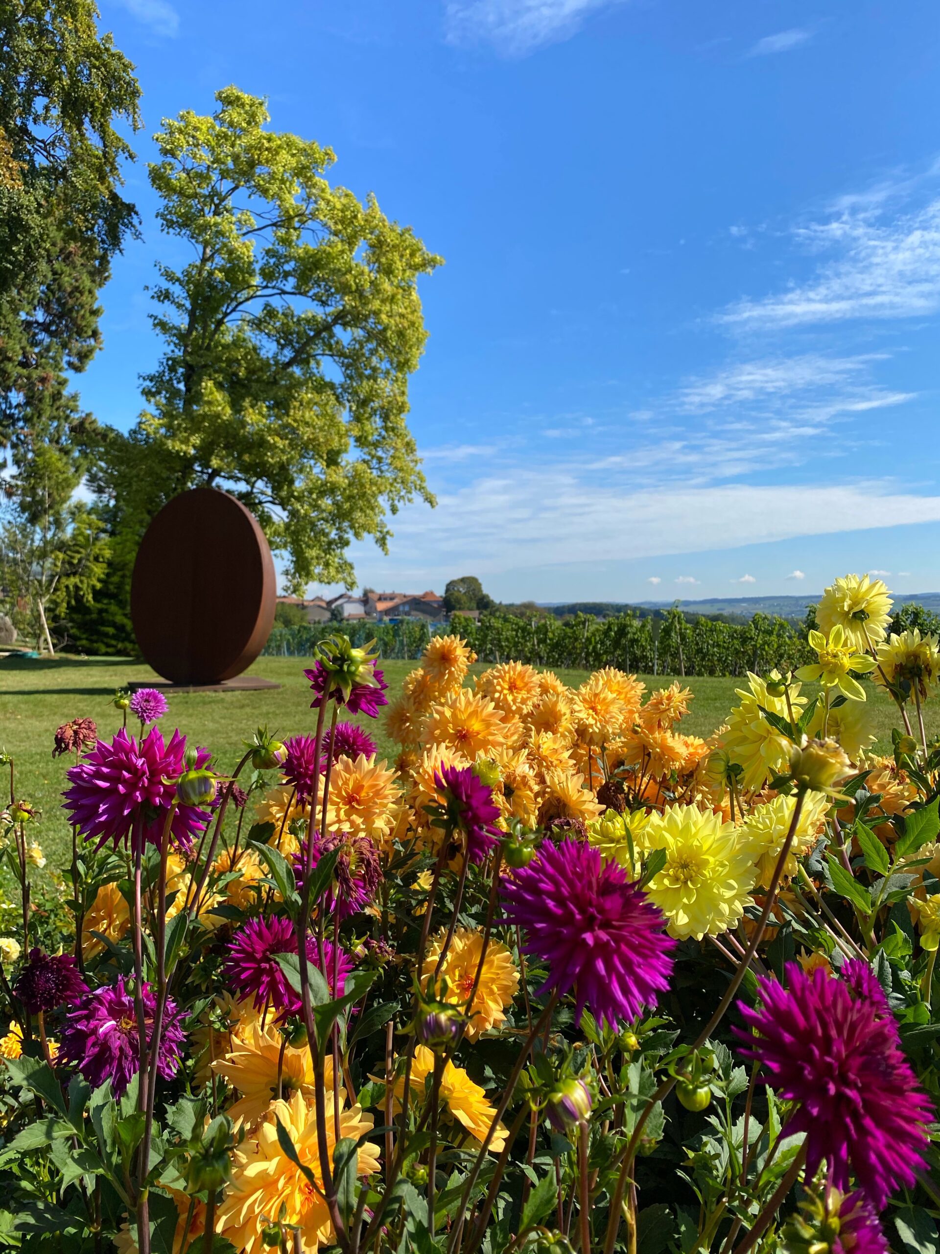 Wenn der Sommer sich ausdehnt und das Licht goldener wird, tritt ein neuer Star in den Gärten des Château de Vullierens in den Mittelpunkt: die Dahlie. Diese spektakuläre, üppige, manchmal extravagante Blume bietet von Juli bis zum ersten Frost eine großzügige Blüte und verlängert die Blütezeit mit einer Fülle von Formen und Farben.