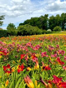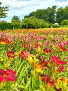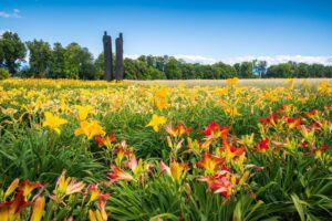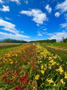 Sie kennen uns für unsere Schwertlilien, aber unsere Taglilien sind nicht weniger beeindruckend! Tausende Blüten, verteilt auf über 10.000 m², 200 verschiedene Sorten und mehr als 2 km Spazierwege, erwarten Sie den ganzen Juli über in unseren Gärten.